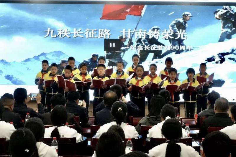 上午九时,活动在温暖沉静的氛围中拉开帷幕。专题短片《铁流汇陇原——红军长征在甘肃》回溯峥嵘岁月,俄界会议的历史抉择、腊子口战役的英雄壮举、洮州会议纪念馆的革命印记,与现场陈列的长征主题典籍、红色文化展板相互映衬,共同再现波澜壮阔的革命征程。冶力关镇池沟村小学三年级15名同学集体朗诵诗歌《九秩长征路 甘南铸荣光》,童声清朗,意蕴深厚,激发起全场深沉的家国情怀与精神共鸣。